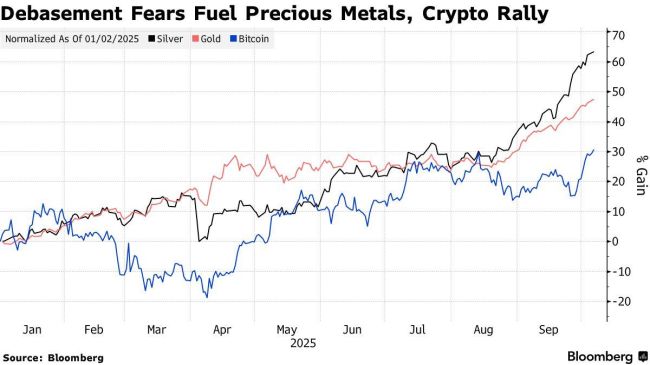 Hintergrund sind die immer höheren Staatsschulden der USA, Japans und Europas. Das treibt die Nachfrage nach alternativen Anlagen wie Edelmetallen und Kryptowährungen, die laufend neue Rekorde markieren. So stieg Gold am Montag auf ein neues Allzeithoch von knapp 4000 Dollar je Unze, Silber näherte sich seinem Rekordwert und Bitcoin bewegte sich knapp unter dem am Wochenende erreichten Höchststand.