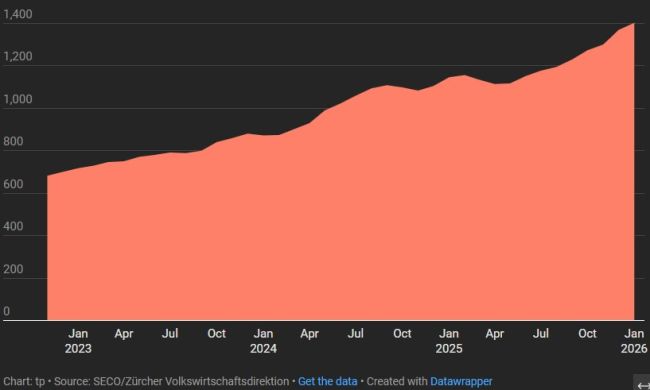 Im Januar 2026 waren in Zürich 1402 Bankangestellte beim RAV gemeldet – so viele wie seit Jahren nicht mehr. Gegenüber dem Vormonat nahm die Arbeitslosigkeit um 2,5 Prozent zu, wie das Amt für Wirtschaft vermeldete. Im Vergleich zum gleichen Monat im Vorjahr beträgt der Zuwachs 22,3 Prozent. Damit ist die Bankenbranche am stärksten von der Situation am Arbeitsmarkt betroffen.