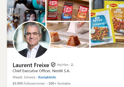 Er war nicht einmal ein Jahr lang CEO des Nahrungsmittelkonzerns Nestlé. Im September wurde er wegen einer verheimlichten Beziehung aus dem Konzern entfernt. Akzeptiert scheint Laurent Freixe diesen Rauswurf noch nicht zu haben. Auf der Karriereplattform LinkedIn gibt er nämlich nach wie vor an, Chief Executive Officer von Nestlé zu sein.
